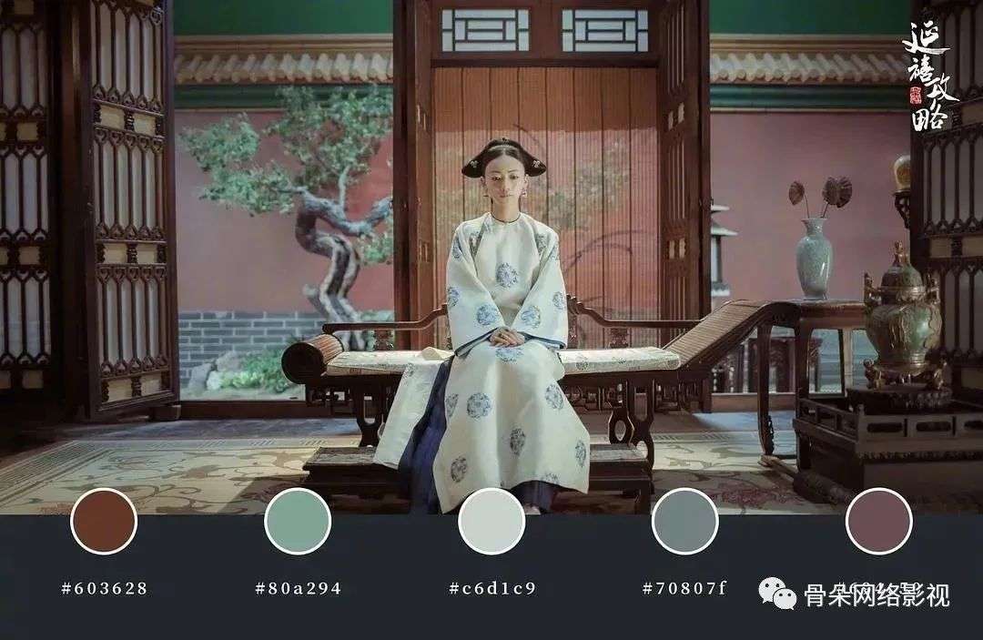 《延禧攻略》时期关于剧集质感的讨论就十分热烈,当年“莫兰迪色”引发的讨论和审美流变持续了相当长的时间,而在这之后三年的剧集滤镜发展过程中,越来越多颜色各异的滤镜占领屏幕,尤其是在古装剧中,低饱和度+不同颜色的调色配比成为流行趋势。