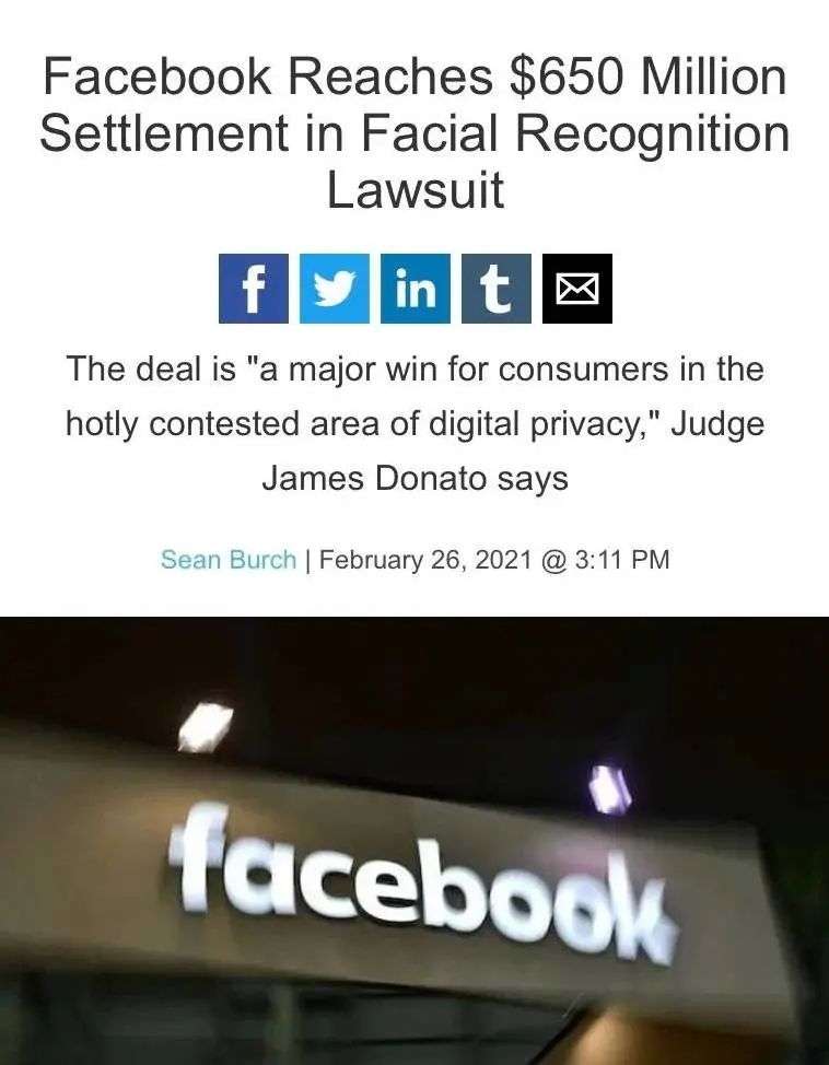 去年,Facebook还同意支付6.5亿美元的和解金,这是因为此前一项诉讼称,Facebook的标签工具违反了伊利诺伊州的《生物识别信息隐私法》。