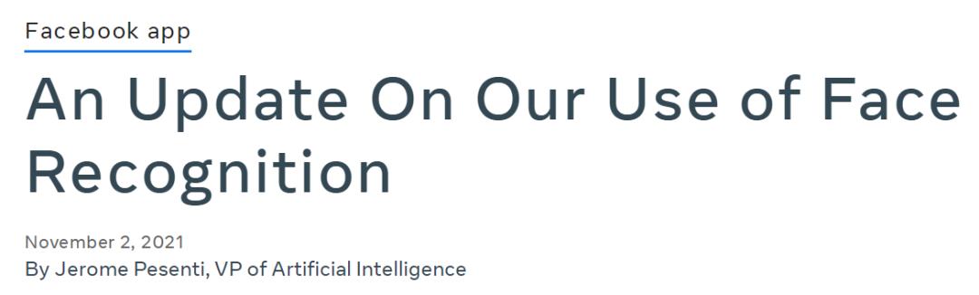 11月3号,Facebook表示,将停止使用人脸识别来标记照片。