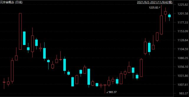 11月9日,火热的元宇宙概念熄火,板块指数下跌1.28%,仅稍好于煤炭板块的下跌幅度。