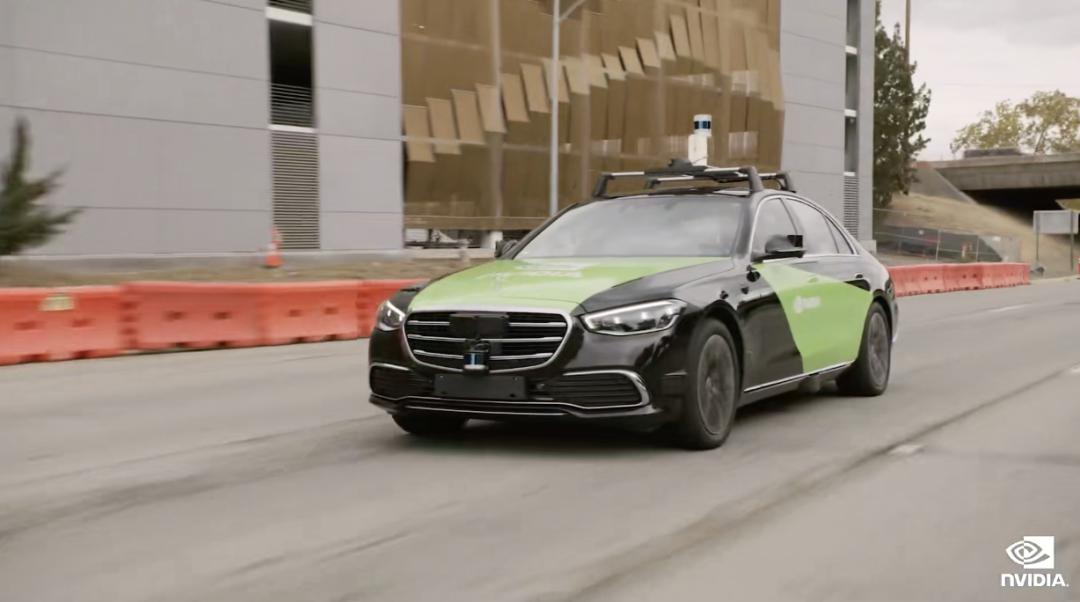 光说理念不行,在演讲中,老黄还现场展示了搭载 Hyperion 8 架构的奔驰 S 的路测视频。测试路段为英伟达总部周边。在这段路测中,搭载 Hyperion 8 架构的奔驰 S 先后完成了并线、人行横道避让、交叉路口、环道及四叶草立交桥的通行。