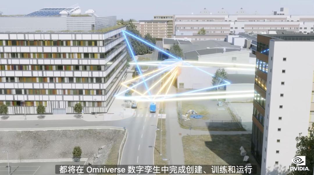 英伟达虚拟世界模拟引擎 Omniverse 贯穿了整个主题演讲,机器人、自动驾驶车队、仓库、工厂甚至整个城市都将在 Omniverse 数字孪生中完成创建、训练和运行。