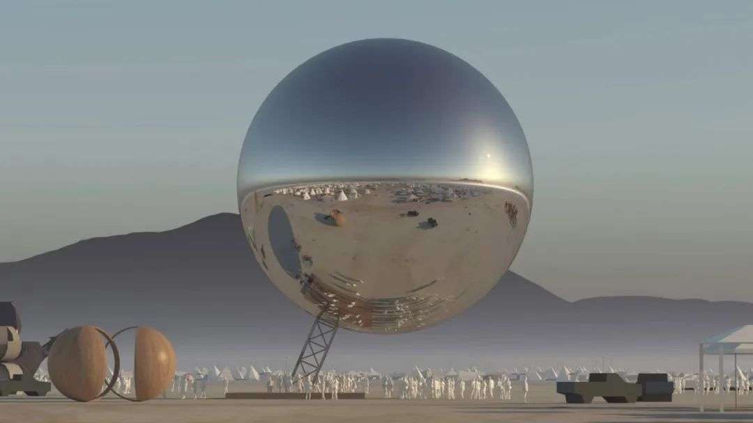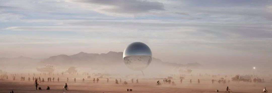 在黑石沙漠举办的“火人节”(Burning Man Festival)常吸引有趣的人前往。2018年,BIG的两位建筑师Bjarke Ingels和Jakob Lange在黑石沙漠放置了一个直径25米的镜面球体ORB,光是钢材就用了几十吨,不过ORB的镜面却不是金属构成的,是充气膨胀的,可大可小,能随时拆走,以保证对环境友好。