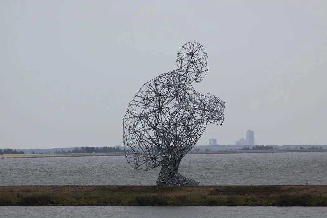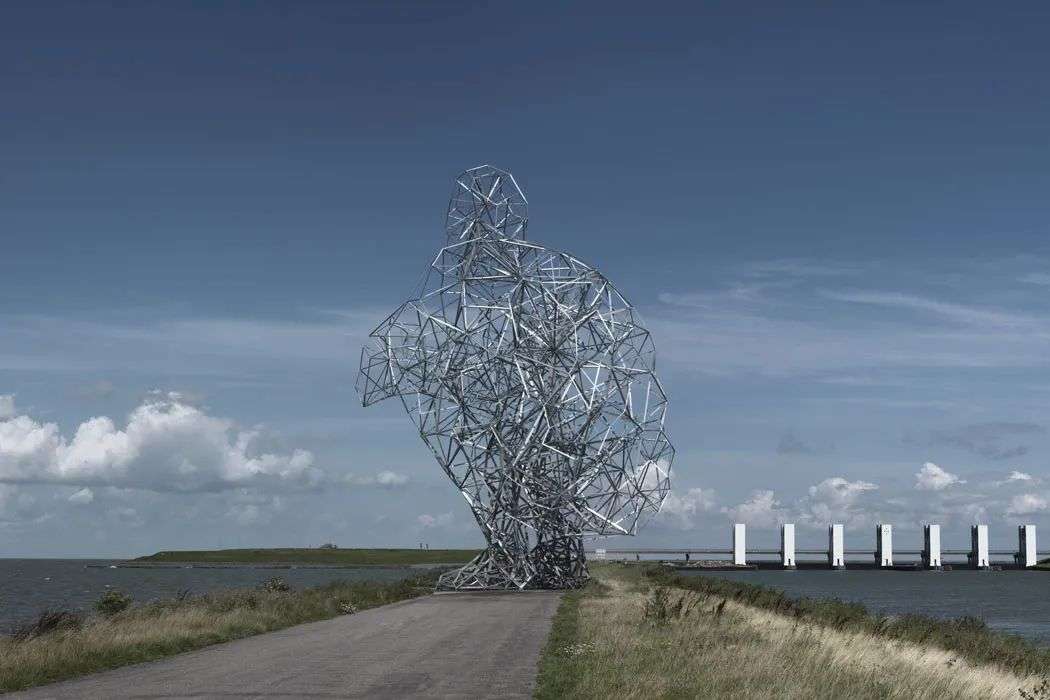 他在荷兰莱利斯塔德设计了一个地标性雕塑Exposure 2010,这座人体雕塑有26米高,以蹲下远望的姿态看着Markermeer湖,ta似乎在思考着什么,看上去不太乐观。