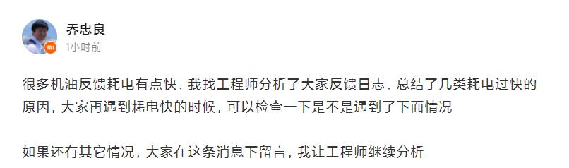 有趣的是,在小米高管乔忠良发布这则帖子后,网友的整体评价其实是比较负面的。一部分用户抱怨,“我买的可是旗舰手机,如果不开这些功能,那不就是在白白浪费性能吗?”另外一部分用户表示,“明明小米官方知道手机耗电过快的原因,为什么续航能力还是跟不上呢?”