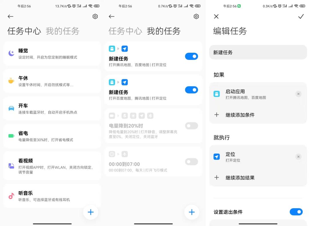 有的用户可能会说,“我不想频繁开关定位功能”。没有关系,MIUI 12.5内测版目前已经推出了全新的“自动任务”功能,用户可以自行设置在开启哪些软件的同时自动打开“定位”,并在用户离开对应软件时自动关闭“定位”,这样能够有效减少用户的操作步骤,同时增加手机的续航时间。