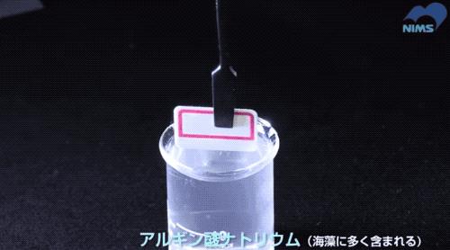 在果蝇脚脚发育规律的启发下,他们用低配的材料制造出了上面和果蝇脚脚一样粘人的大力工具:脚毛是拉长的尼龙丝,脚汗是海藻酸钙,把两根尼龙丝泡在海藻酸钙溶液里,拉出来就成了,整个过程在室温下就能方便进行。