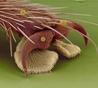 就像你在图片里看到的那样,实际上昆虫主要靠两种“毛手毛脚”的身体结构实现攀缘,第一种是跗端节的脚脚(类似于人的手脚),第二种是脚脚上的毛毛(类似于手脚上的汗毛)。