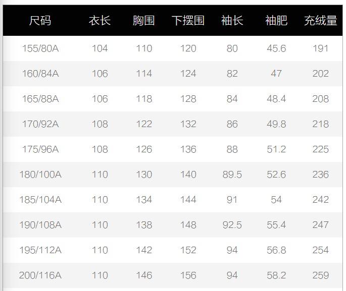 我们可以看到,款式相同时,尺码越大,填充进去的羽绒也越多。一般情况下,填充量越多会越保暖,但这并不意味着充绒量越高就越好。