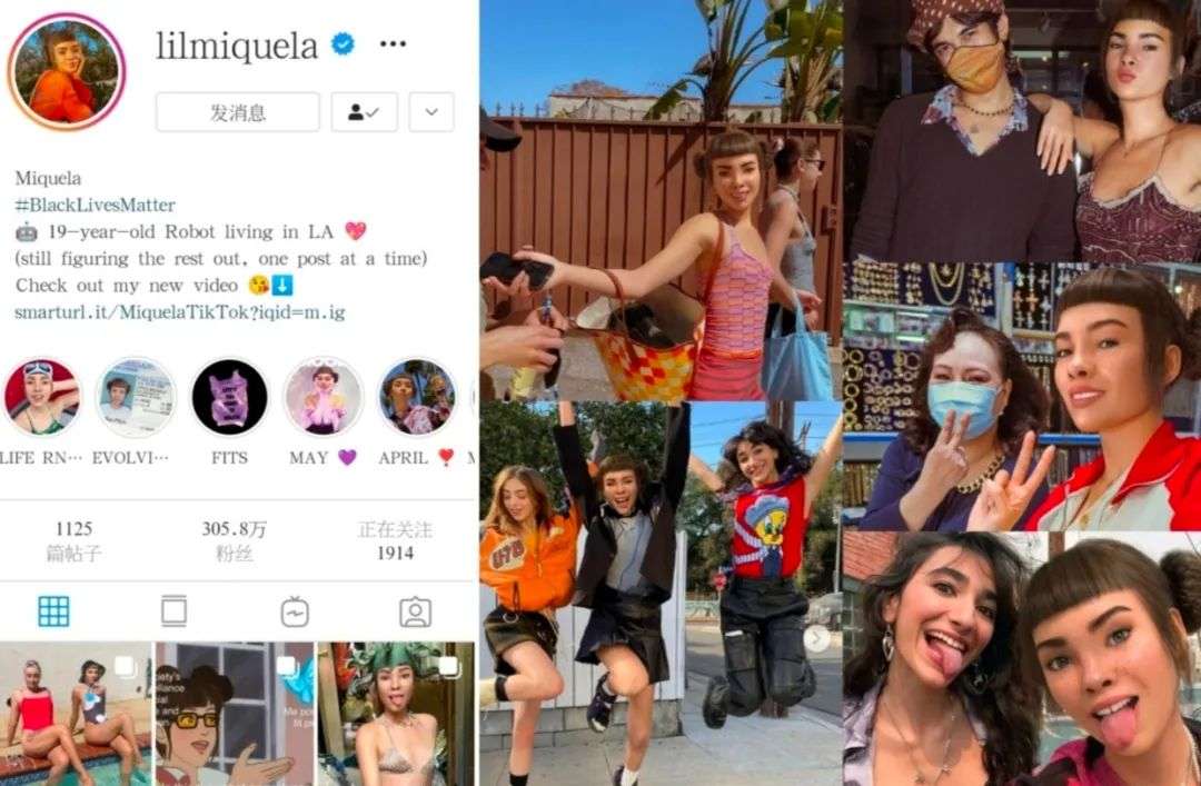 INS的虚拟网红Lil Miquela,人设是一位模特兼时尚博主,还是个发行过单曲的音乐人。她喜欢四处旅行,晒生活和时尚穿搭,经常和朋友聚会,这样的她在Instagram上拥有了300万粉丝。
