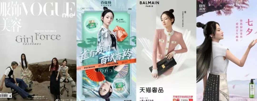 自从出道后她的代言也是源源不断,时尚杂志《VogueMe》的开年封面就邀请了翎,最近的双十一也与天猫有了合作。