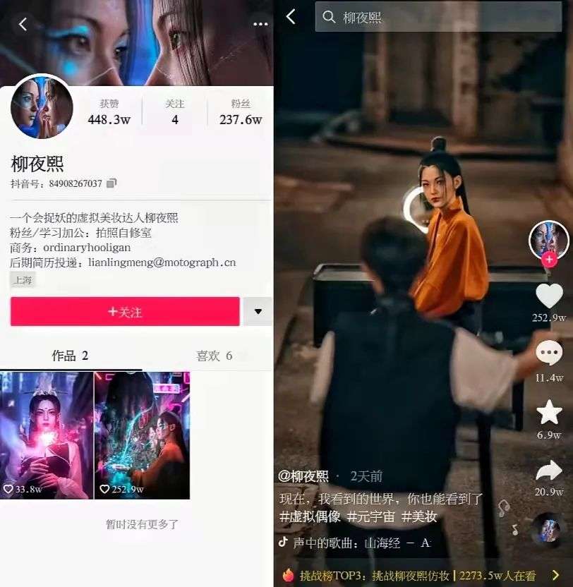 柳 夜熙的一夜爆红成就了抖音虚拟网红的流量神话。
