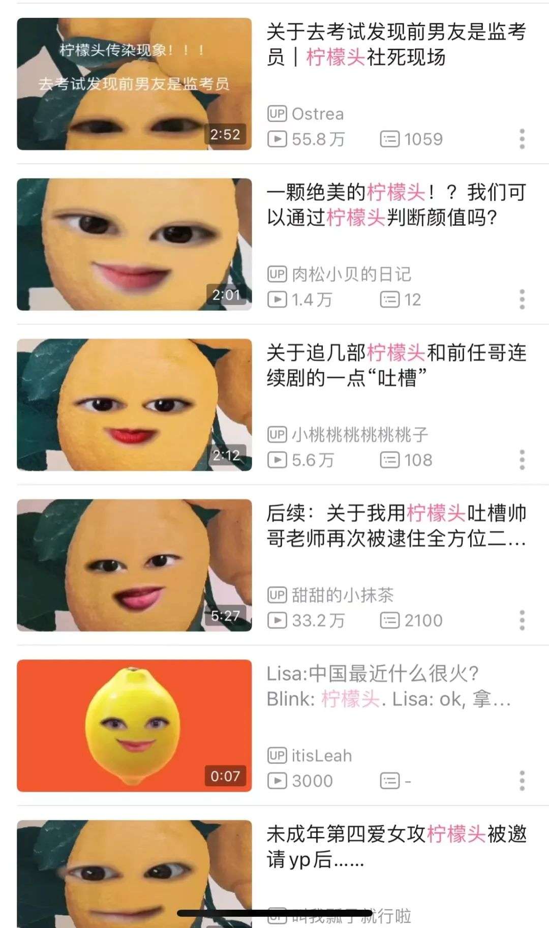 浏览B站相关内容页面,我们仿佛走进了一个巨大的柠檬果园区,大量相似封面与标题的吐槽视频整齐排列,一颗颗黄色的柠檬头跃然屏上。