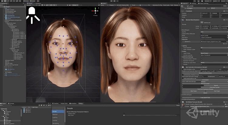 为了处理这些细致的表面细节,Unity 将导入序列的几何图形与来自 Snappers Systems 的混合形状基于面部的特征映射结合起来。