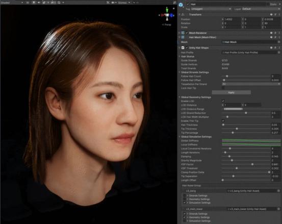 虚拟人头发渲染是通过机器扫描一位真人,之后再用Unity最近发布了全新的头发系统进行渲染。
