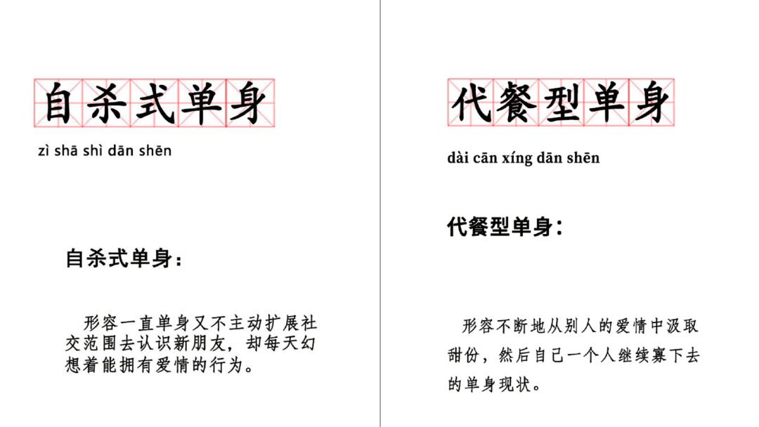 这两个古早词汇现已融入日常生活,成为平平无奇的习惯用语,所以不甘寂寞的网友又为单身群体创造出了更加细分的叫法。