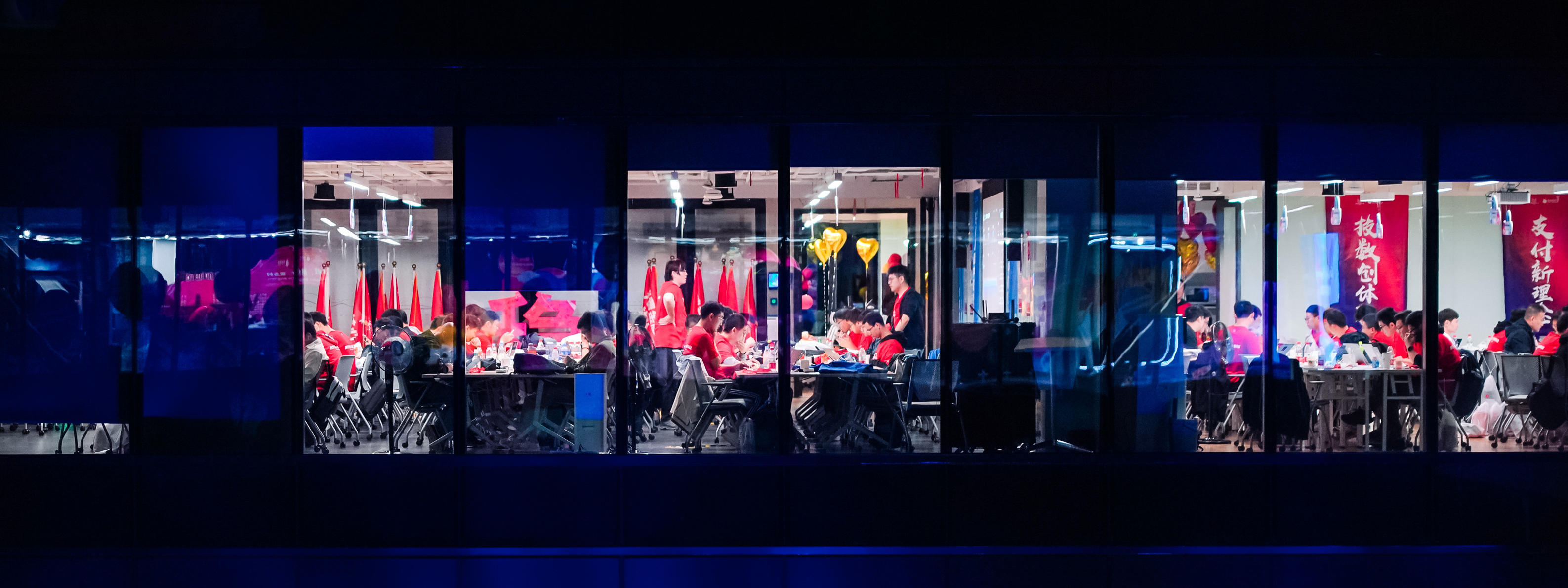 作为保障支付平稳等功能的蚂蚁集团,以往每到双11,团队内部都会调侃“工程师们要喝着红牛熬过洪峰”。工作台中间摆一尊关公像,几位程序员守着电脑围坐在四周,“拜着关公打洪峰”是这个群体在面对挑战时特有的幽默感,也形象传达了他们在前几年双11期间面临的压力。