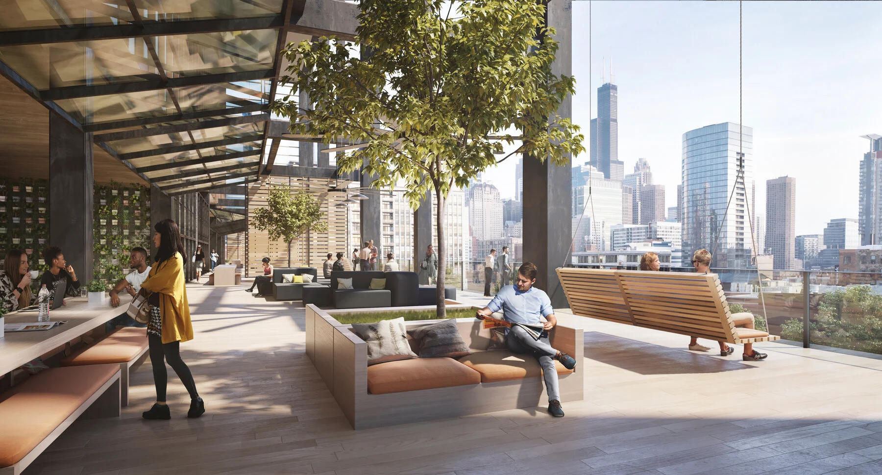美国芝加哥北格林大街330号项目(330 North Green Street)即将破土动工,SOM事务所将项目地南面设计成“门廊”,这里集中设有伸缩门、休息室、办公空间、壁炉、露天健身场所和板网球场,将在气温允许的情况下开放使用。