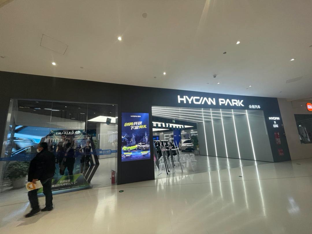 在合生创展旗下的商场、北京合生汇一楼,合创汽车的展厅,门口是EDG队员的人形立牌,竖版店名标识是“HYCAN✖️EDG”的联名展示。edg胜利后,合创汽车体验店一如往常,很多从门口匆匆路过的人会注意到人形立牌,但本周二下午4点-7点,参与试驾的客户共有2组。