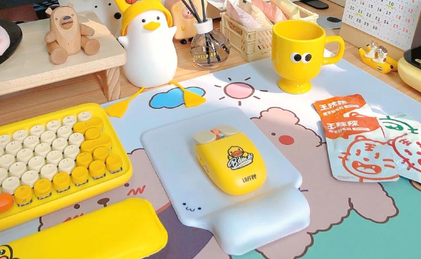 “每天在工位10小时,我的格子间很难看到太阳,从早到晚被白炽光笼罩,让人略感压抑。所以入手了图中的洛菲键盘和鼠标,把恒温水杯贴满贴纸——添一抹明亮的色彩,聊表安慰。”