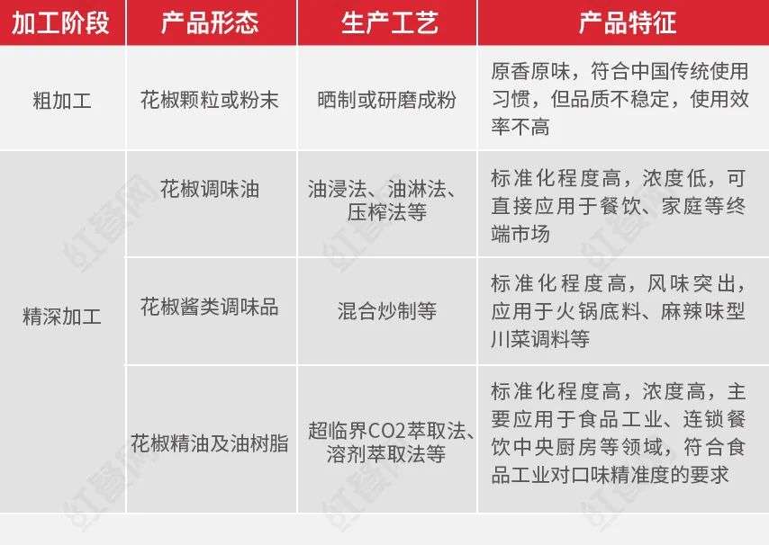 从中游加工工艺来看,我国花椒加工业主要分为粗加工和精深加工两种。