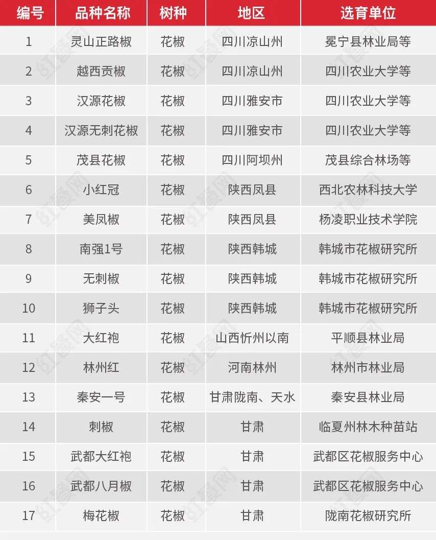 其中,西南地区主要以青花椒为主,代表品种为九叶青花椒、顶坛花椒、金阳花椒、洪雅藤椒等;秦岭淮河以北地区主要以红花椒为主,代表品种为韩城狮子头、芮城花椒、武都梅花椒、林州红等。