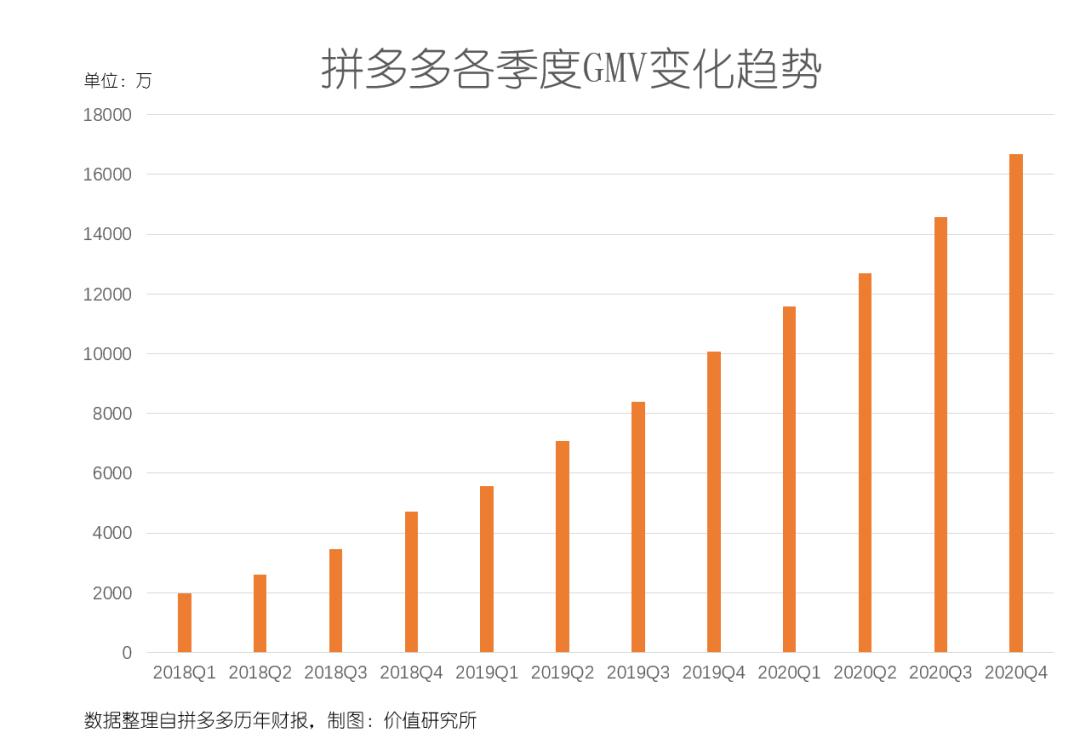 从今年第一季度开始,拼多多不再公布GMV数据。但尚未解决的亏损提醒我们,拼多多还没有在用户留存、复购率和客单价之间找到平衡。而且从过去几年公布的数据来看,拼多多GMV增长曲线就一再趋缓,从2018年第一季度的40.7%跌至去年第四季度的14.1%。