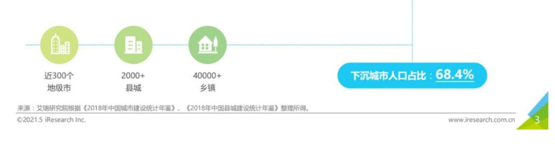 结合最新公布的人口普查数据,艾瑞咨询分析称,三线以下城乡地区的人口占全国总人口的68.4%,优势相当明显。