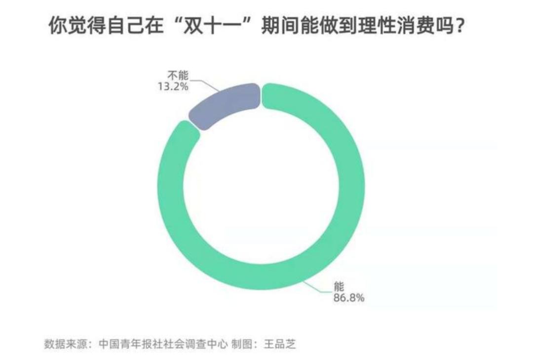 中青网在双十一当天发布的调查显示,超过86%的消费者表示自己能在双十一期间做到理性消费。预售时间过早、营销套路太深,取代折扣力度、平台补贴大战,成为了大部分消费者对本届双十一的最终印象。