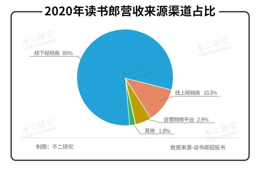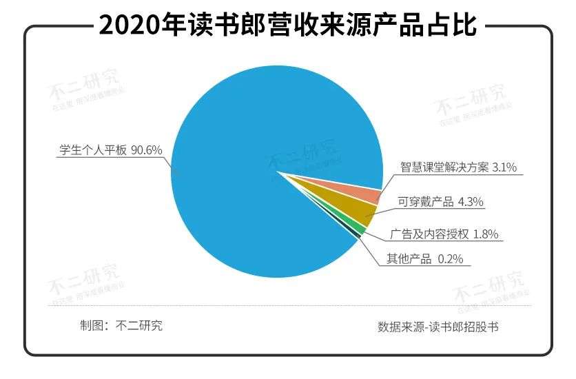「不二研究」从读书郎招股书发现,其营收高度依赖于单一产品和单一渠道。截至2020年,学生个人平板在总收益占比高达90.6%;来自线下经销商收入在总收益占比,近三年最高达91.7%。