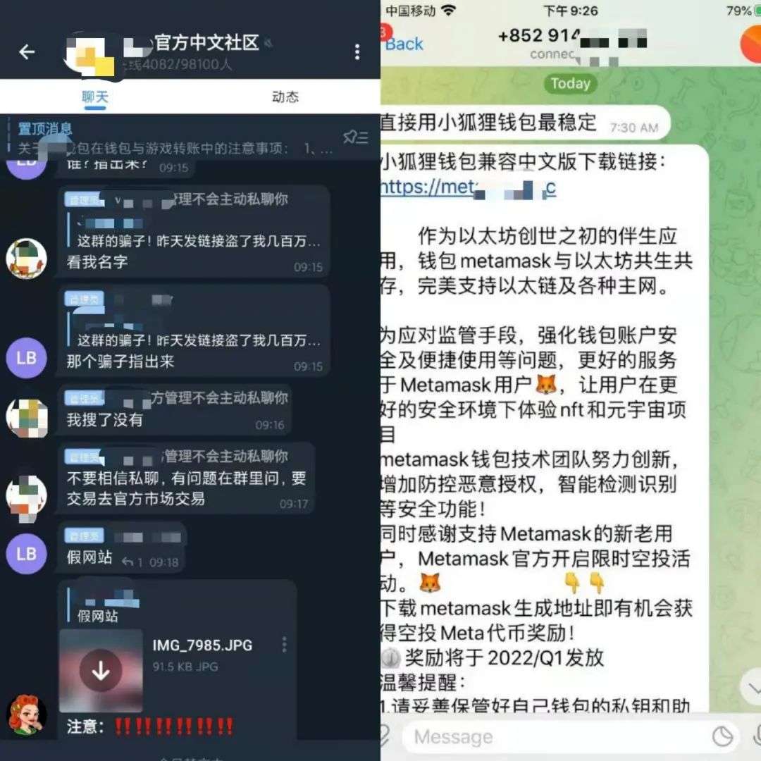最后一种割韭菜的方式,则是直接诈骗。例如,在一些元宇宙游戏群内,人为发布钓鱼网站,以空手套白狼的方式,骗取玩家的钱。Tech星球发现在某社群内,有玩家因为误点钓鱼网站,已被骗几百万元价值的虚拟币。