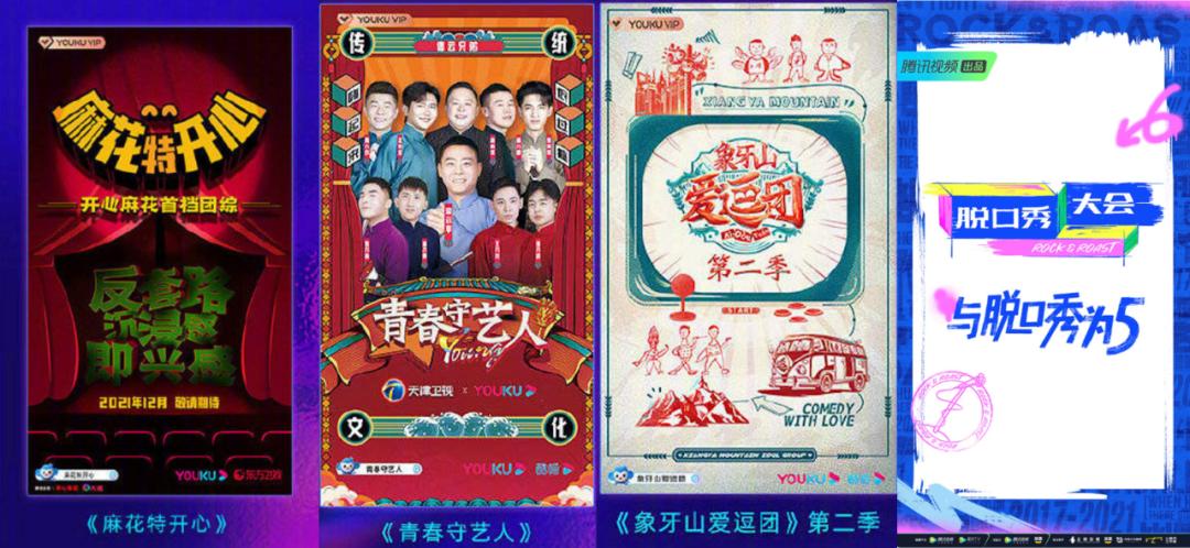 赵家班方面,目前旗下唯一团综《象牙山爱逗团》将和优酷再度合作第二季;笑果方面,“脱口秀内容领跑者”腾讯视频早早安排上了《脱口秀大会5》《脱口秀反跨年2021》,而优酷今年则首次加码脱口秀赛道,新综艺《不一般脱口秀》目前曝光的信息不多,不知会呈现怎样不一般的脱口秀内容。