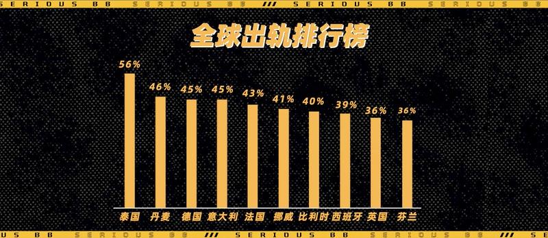 不仅如此,老百姓也是群策群力,凭着45%的出轨率“荣登”全球出轨排行榜top3。
