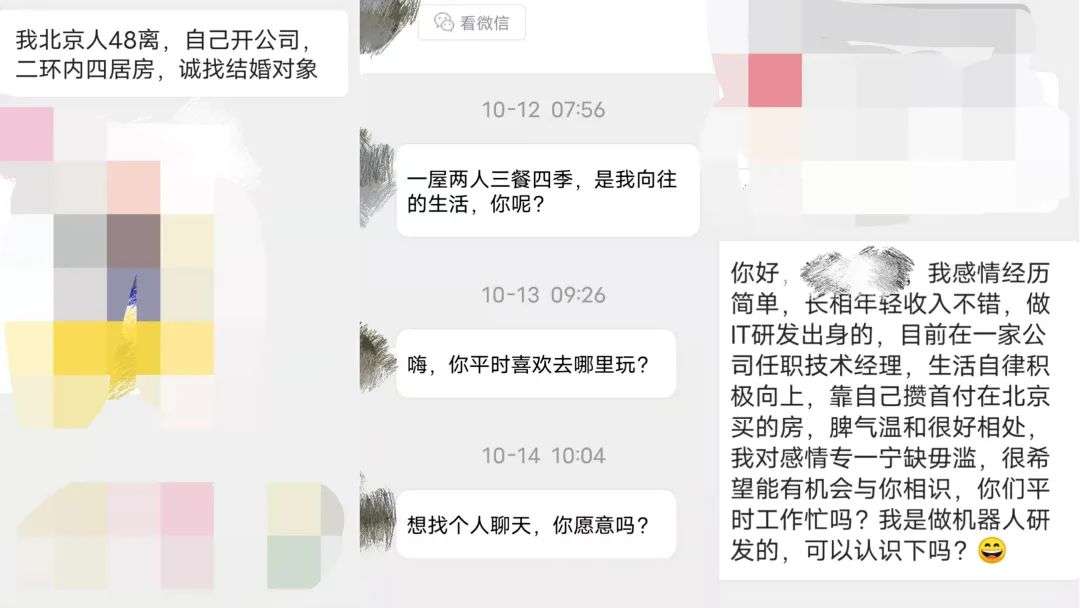 作者在某中老年相亲App上收到的消息