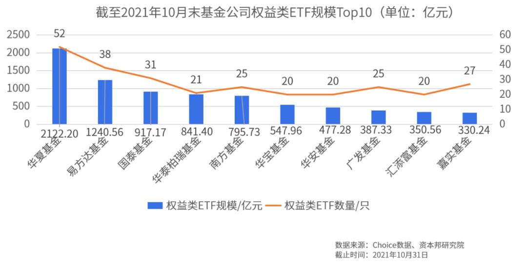 截至2021年10月末,51家基金公司布局权益类ETF,旗下权益类ETF规模合计为9871.61亿元。