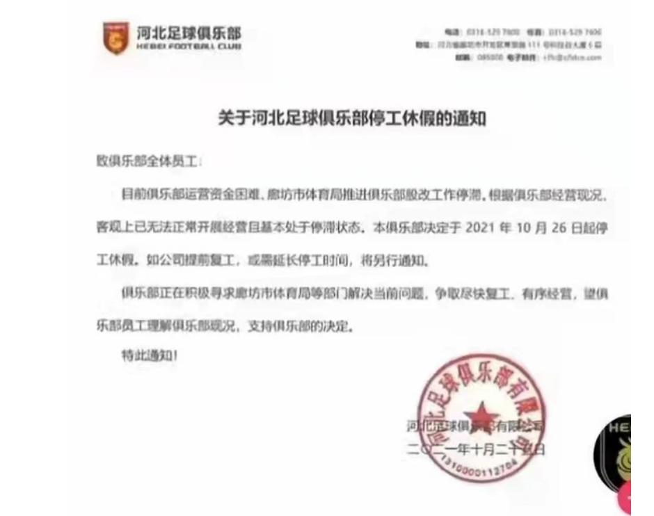 如果说广州队的停摆还停留在传闻层面没有彻底坐实,那么另一家同样由房企控股的河北足球俱乐部停工的消息则已是板上钉钉。