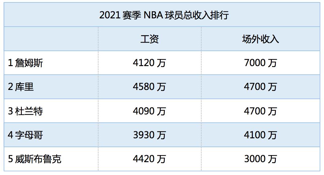 在今年疫情肆虐的背景下,著名球星勒布朗詹姆斯的赛季收入(年薪和场外赞助)能够达到惊人的1.112亿元,并且共有8位球星的总收入超过了5000万美元,金元时代仍在继续。