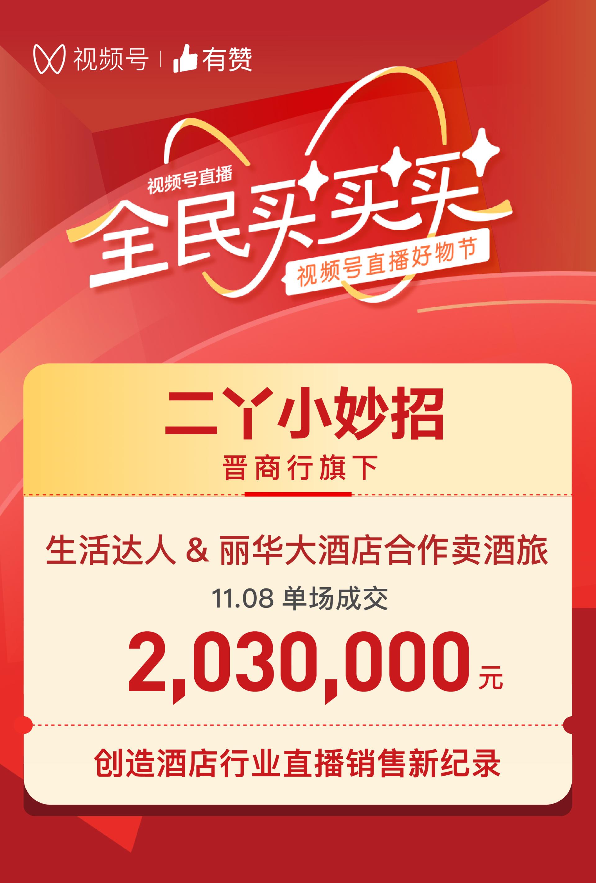 除了发力飞猪、携程等平台,酒旅品牌也在开辟视频号“双11”新战场。11月8日,晋商行旗下视频号达人“二丫小妙招”联合丽华酒店,通过视频号直播售卖婚宴代金券、五星级房型、酒店套餐等“硬通货”,单场直播共计带来销售额突破203万。
