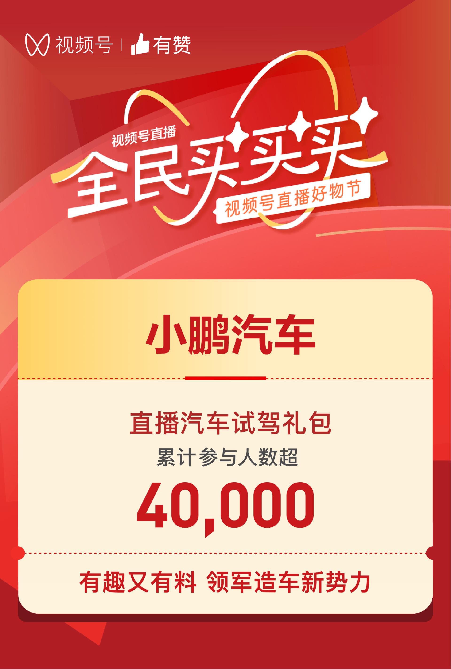 11月4日,小鹏汽车正式加入视频号双十一带货阵营,通过直播售卖“1元享试驾体验”,限量秒杀“3.33元抵3333元”、“6.66元抵6666元”、“9.99元抵9999”等大额尾款券活动,吸引40000位消费者参与活动,之后配合到店体验,加速销售转化。本次视频号双十一直播节,也是小鹏汽车首次试水视频号直播带货。