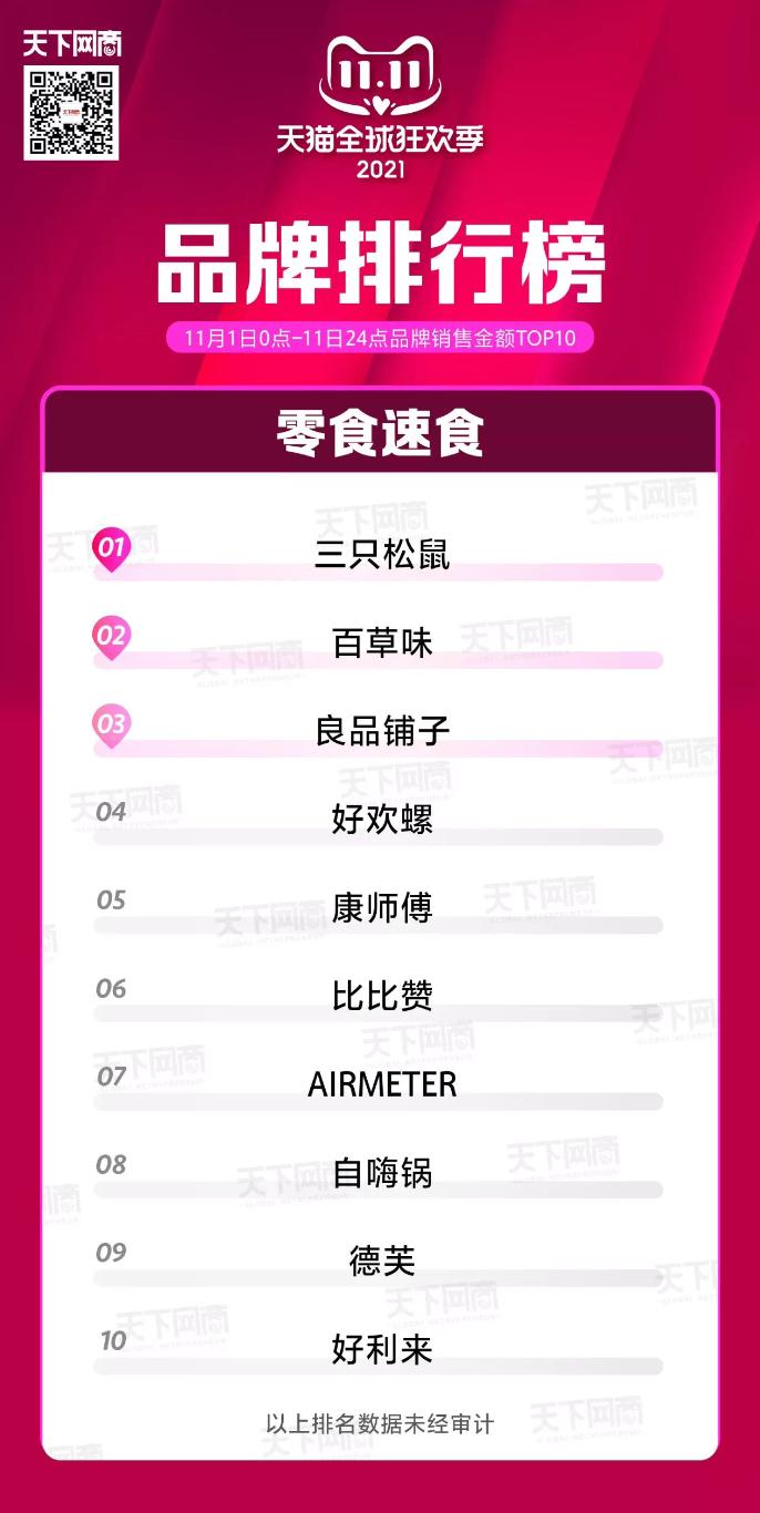 今年双十一,天猫榜显示农夫山泉是饮品类第一,康师傅是速食类第五,超过了自嗨锅,拉面说们。