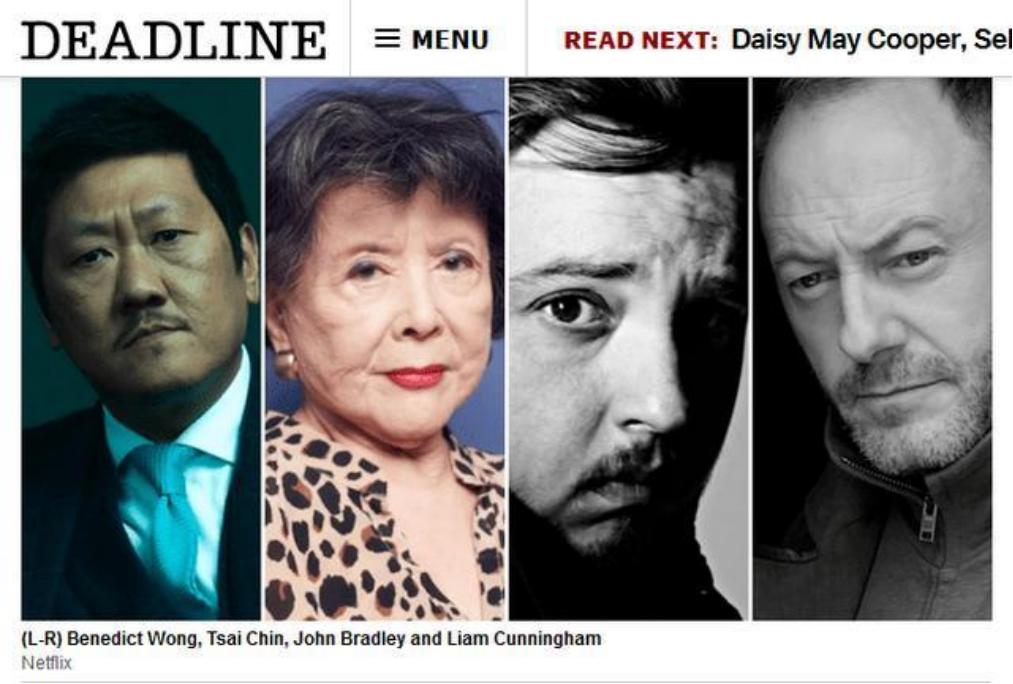 据了解,网飞版《三体》由《权力的游戏》主创 David Benioff 和 D.B.Weiss 担任编剧与执行制片,刘慈欣与英文译者刘宇昆担任顾问,《七月与安生》《少年的你》导演曾国祥执导,艾莎·冈萨雷斯、Benedict Wong、周采芹、“山姆”约翰·布莱德利、“洋葱骑士”利亚姆·坎宁安、约翰·艾德坡、Jess Hong、玛洛·凯丽、艾利克斯·夏普、Sea Shimooka、Zine Tseng、沙莫·阿斯玛尼等首批12名演员加盟。