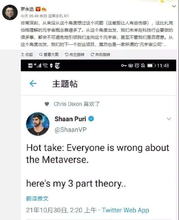 日前,罗永浩发文宣布——明年春天将重返科技行业,还完债的当天就会回归,而下一个创业项目是一家所谓的“元宇宙公司”。