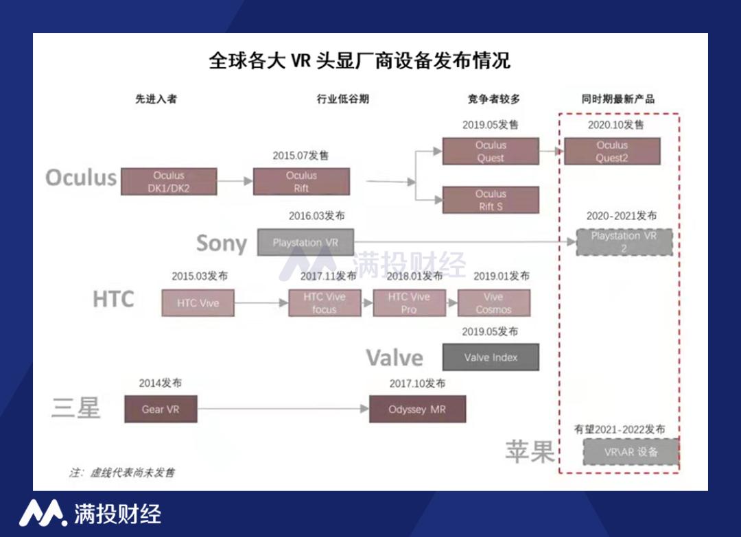 和投资5G概念一样,对新兴产业的投资往往从技术设施开始。正如上文所说,同步和拟真的虚拟世界是“元宇宙”构成的基础条件,而这些需要硬件和基础设施的进步和 C 端渗透。而前面提到的VR、AR产业链,在元宇宙的概念中被认为是打开世界的“钥匙”。经历了2016年的寒冬后,VR产业在芯片、显示、传输、通信等各个模块高速发展,技术和内容快速更新迭代,消费级的硬件产品不断推出,产业在泡沫破灭后,再一次迎来了理性的发展期。