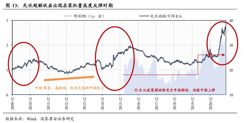 装机量高度反弹的阶段,通常也是光伏超额收益出现的时刻。