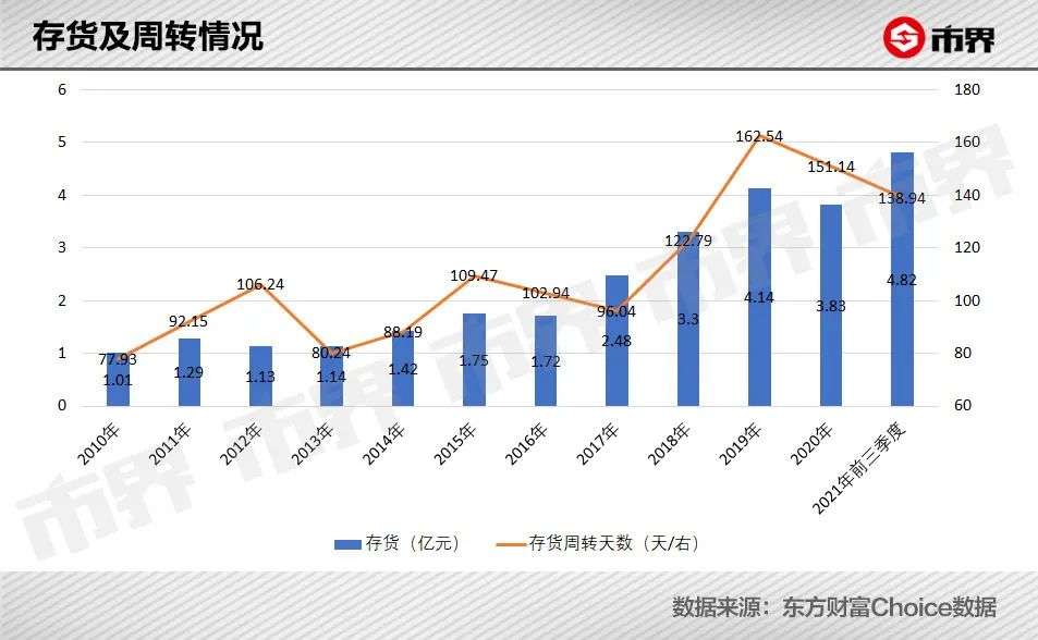 截至2021年9月底,公司存货余额达到历史最高值,4.82亿元。存货周转天数139天,连续三年保持上市以来的高位。