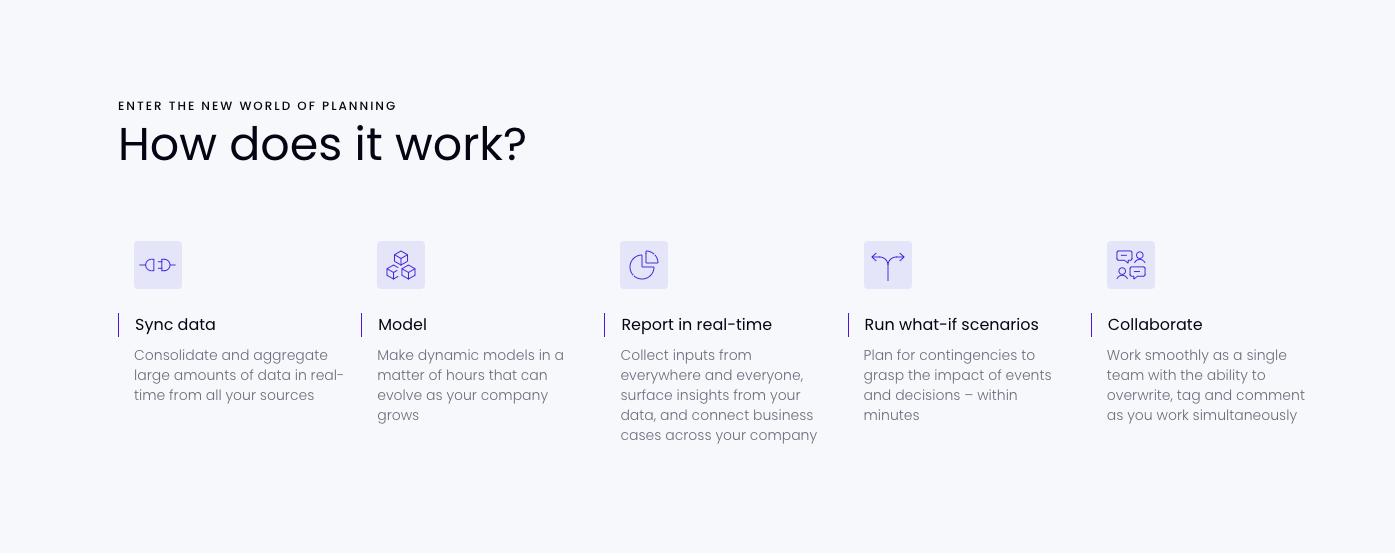 而本轮融资的领投方Greenoaks Capital的负责人Neil Shah也在一份声明中表示:"(在财务规划和分析方面,)大多数公司依靠的是多年来没有发展的软件——要么是不灵活、不能扩展的过时的电子表格,要么是昂贵而过于复杂、需要一整个行业的顾问来支持的FP&A套件。当下的企业需要敏捷和智能的工具,来将帮助他们更快地做出更好的决定。""我们相信,该公司将迅速成为市场上规划软件的领导者,比任何竞争对手都更快成长,构建更广泛的使用场景,并在此过程中让他们的客户满意。"