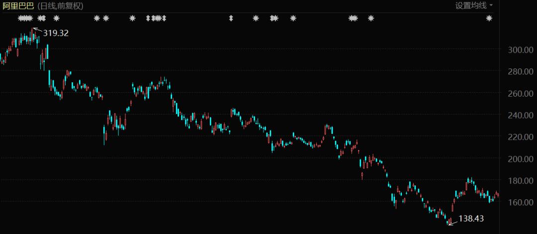 在美股市场,“天字三号核心资产”、中概股的头羊阿里巴巴(NYSE:BABA)跌幅更大,2021年累计跌幅近30%,自2020年10月开始计算,最高跌幅超过了53%。