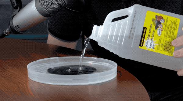 后面的步骤就像洗相片一样,倒上显影液,用酸(小伙用的是白醋)腐蚀晶圆的暴露部分,洗掉残留的光刻胶。