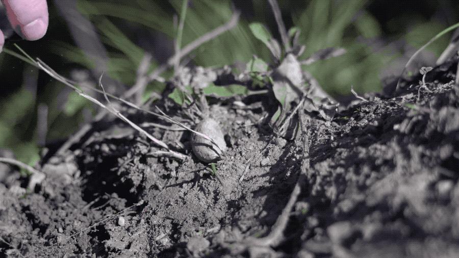 首先小伙把捡来的石英石敲碎,得到二氧化硅颗粒。