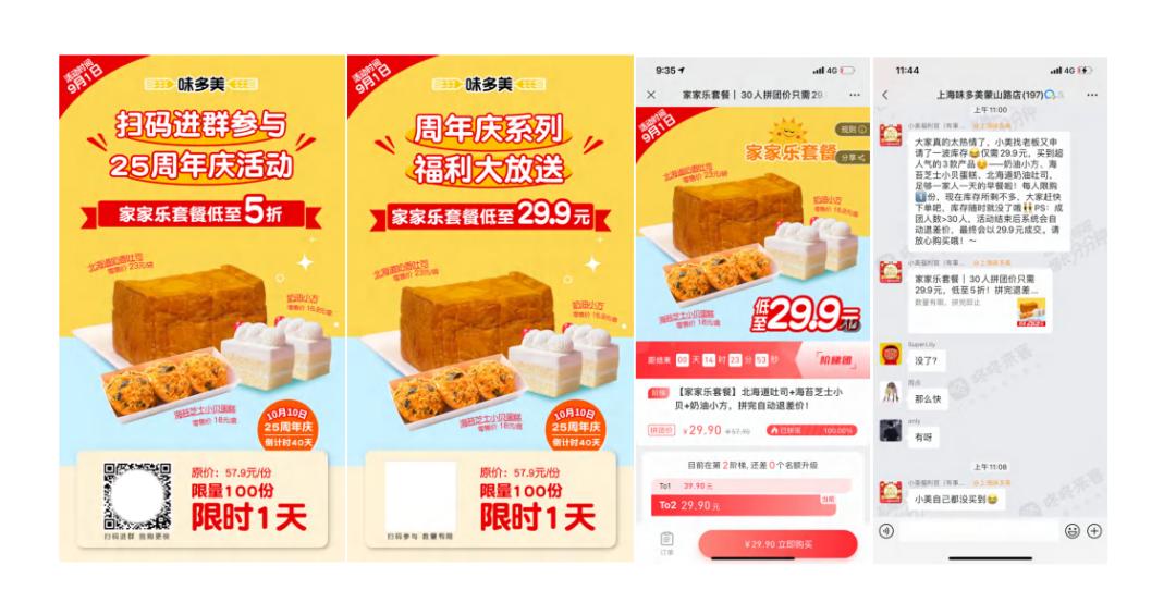 这些社群活动,味多美都会提前⼀天,通过朋友圈、社群对活动进⾏预热,引起顾客好奇⼼。
